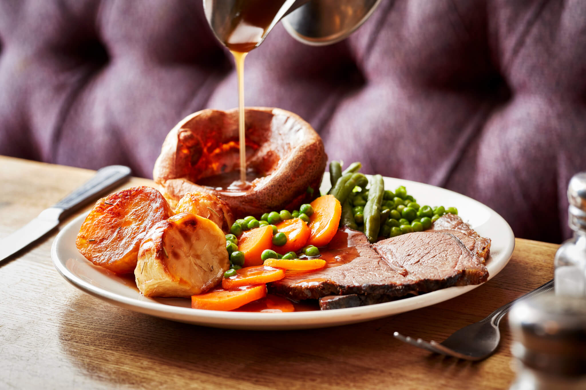 The Sunday roast — an age-old British tradition, lovingly reimagined in our inns. Think perfectly roasted meats, spuds with a satisfying crunch, Yorkshire puddings puffed up proud as punch, and seasonal veg cooked to just the right bite, all generously bathed in the chef’s rich, glossy gravy. It’s a meal that feels like a warm hug from history, comforting, familiar, and full of flavour, with just enough finesse to keep things interesting. A proper Sunday, done right.